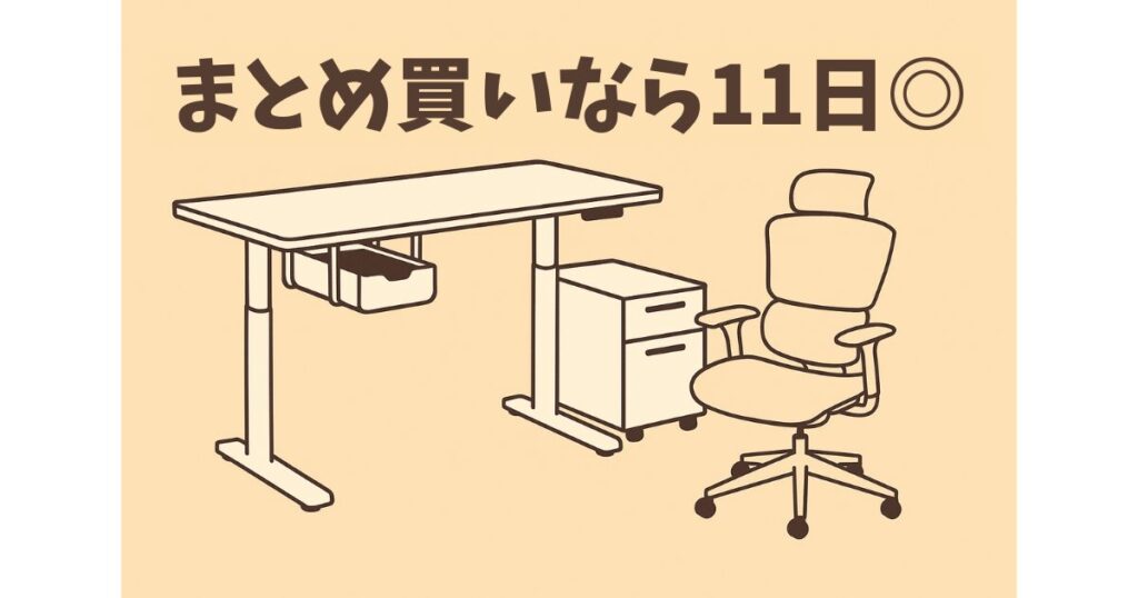 クーポン対象は、昇降デスク・天板・チェアなど幅広く、11日はおトクに買えるチャンスです。