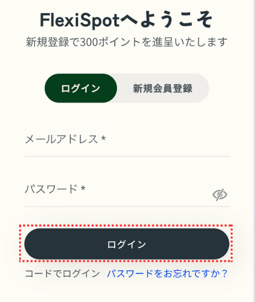 クーポンコードを使うためには、FlexiSpot公式サイトの会員登録が必要です。