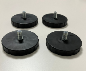 昇降デスクの土台にあるアジャスターの底に、ニチアス カグスベール 重量用 2個入 2個セットを敷く方法です。